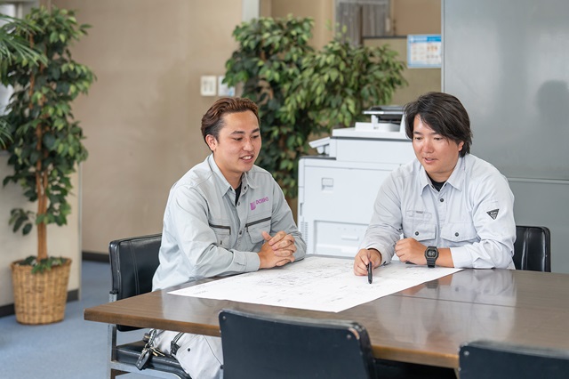 同社に入社すると、新入社員の就業経験に応じてビジネスマナー研修や、空調設備メーカーでの1泊2日の基礎研修に参加する。その後は、OJT期間に入り、先輩に付いて現場を回りながら、空調機器の仕組みや施工について覚えていく。約2年間はOJT期間となるが、独り立ちまでは一人ひとりの業務の習熟度に合わせて柔軟に対応していくという。
