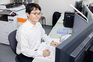 「学生時代にCADを使用した経験はありましたが、会社で使用しているものとは別のソフトでした。入社前に基本操作を教えてもらえて、スムーズに4月を迎えることができました」(入社2年目、設計支援グループの大澤さん)