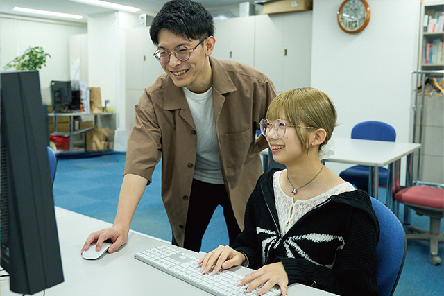 「大学ではイラストを中心に学んでいたので、グラフィックデザインソフトについてはほかの同期ほどのスキルがなく、少し不安でした。でも先輩社員が指導を担当し、デザインソフトの操作も基礎から教えてくださったことで、習得することができました」(三原さん)