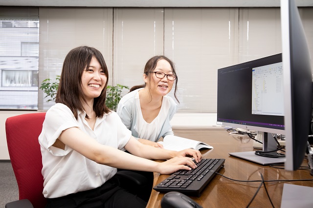社内の人間関係が良く、誰もが話しやすい雰囲気を持っています。先輩たちの知識量が豊富で、疑問点も分かるまで教えてくれるなど、プログラマーとしての基礎を学べています。また男性の先輩社員が育児休業やフレックスタイム制を利用して子育てしていることも多く、男女関係なく長く仕事を続けていける環境だと感じています。(網代さん)