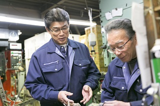 これがクライアントに大受けで、現在は全国各地を忙しく飛び回る日々という。豊岡代表は「コスト低減を目標にしていますが、それはあくまでお客様のコスト低減。弊社の製品を無理な値段で安売りするのではありません。社員が丹精込めて作ってくれた製品を適正な価格で買ってもらえるよう動き回るのが私の役割なんです」と話す。また、もう一人の営業担当である堀内さんは、深絞り加工という技術の将来性を声高に評する。