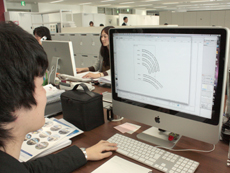 私が担当している仕事は、基本的には展示会のブースが多く業種も様々です。現在は10以上の案件を同時並行で担当しています。そこで、アイディアを出す期間、作業をする期間がかぶらないようにスケジュールを調整しています。全部の案件がアイディアを出す期間としてバッティングしてしまうと、やはり頭がパンクしてしまいますので、そのようにならないように心がけています。アイディアを出す方法については、ロジックを立てて論理的に考える場合もあれば、雰囲気・空気感をイメージして感覚的に表現する場合等様々です。いずれの場合も、今まで見てきた写真や本を頭の片隅において、この案件ならあれが使えそうと考えたりしています。ですから読書は必須ですね。読書といっても、日経デザインや、AXIS(アクシス)などのデザイン誌が中心です。そして、流れ作業ではなく、クリエイティブな仕事ができること、自分から何かコンセプトを発信できることがうれしいし、誇りに思います。