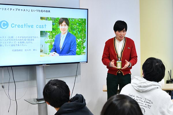 質疑応答時間に参加学生の質問に答える佐々木社長 -