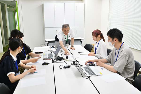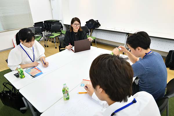 頼りになる先輩社員が見守る中で、積極的なディスカッションが続く -